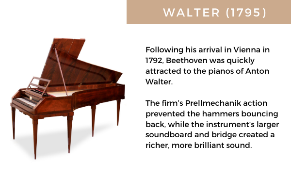 Where does Beethoven fit in all this? The young and successful virtuoso was never shy of making his views known. He expected better from the instruments he played, once writing to a leading piano maker that listening to them was like ‘listening to a harp’. He challenged the manufacturers to do better – and they responded.