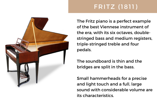 By the time Beethoven died, says Maene, many of the features of the modern instrument that we take for granted today were established – including the seven-octave keyboard, the double-escapement action, felt-covered hammerheads, early cross stringing principles and even the first metal frames.