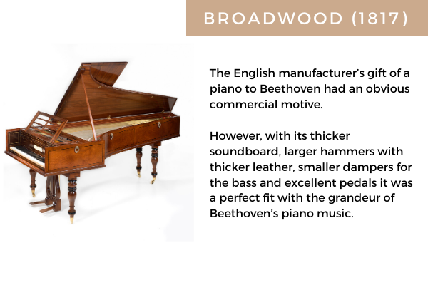 So while we rightly applaud the achievements of the piano manufacturers of the past, thanks must also go to Beethoven in particular for his work in inspiring and challenging them to go further, so hastening the arrival of the beautiful pianos we play today.