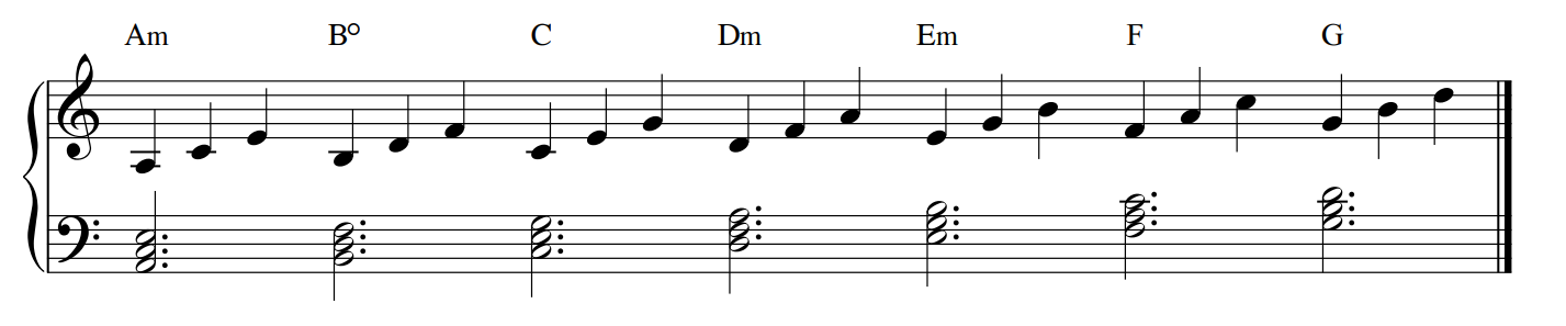 Although Einuadi writes in major keys, his preference is the natural minor scale – shown below. Einaudi normally starts off either by creating simple melodies, using a motif (repetitive idea) or playing chords. Let's use this scale to base our piece on.