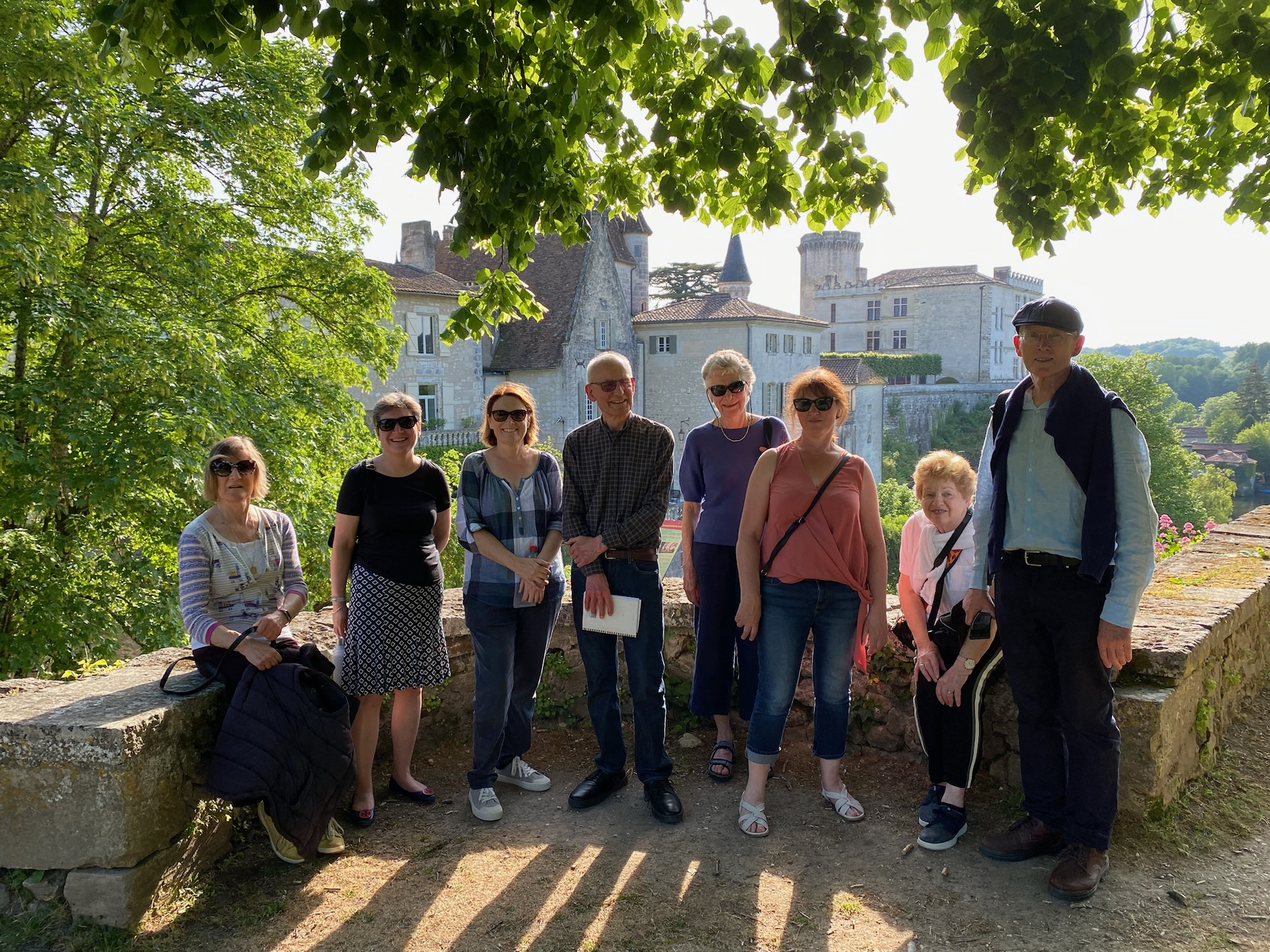 Students and Ann Martin-Davis flanked by magnificent scenery at Piano at Le Maillard: