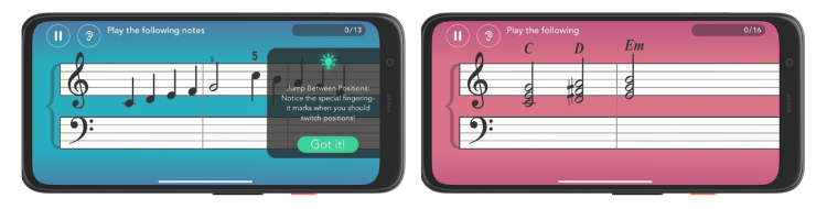 The latest generation is much more of a visual learner than previous generations, and with much shorter attention spans. The Simply Piano app has taken advantage of that by creating an eye-catching, colourful, entertaining interface. With each bit of progress you make on your journey to being able to play the piano, you're greeted with on-screen celebrations and progress bars changing from incomplete to complete. It generates visual satisfaction, enticing you to keep moving forward with your learning.
