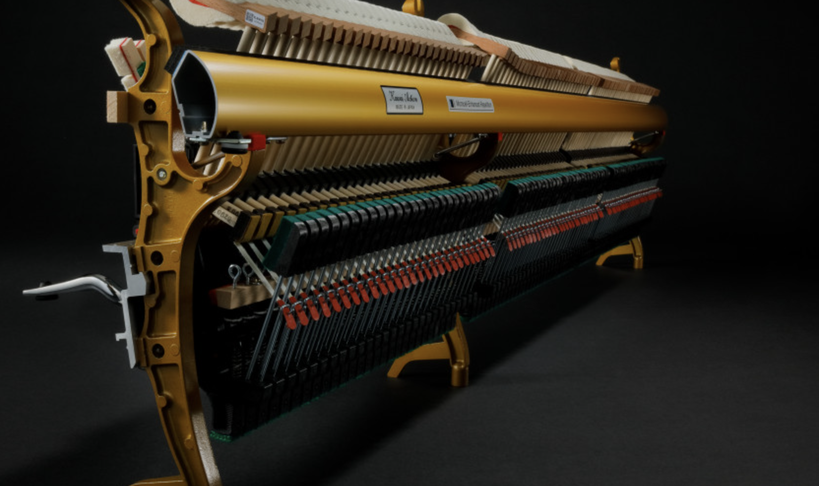 Kawai pianos are noted for their stability and response. At the heart of these models is the Millennium III action with ABS-Carbon Composites (pictured above). It is a lighter and therefore faster and more responsive action than traditional wooden alternatives and one, says Kawai, that provides a more dynamic touch with greater power and faster repetition. The ABS-carbon fibre material is more durable and resistant to environmental conditions, too, contributing to a more consistent and reliable action. To ensure the most reliable and consistent performance, the action is supported by strong, die-cast aluminium brackets.