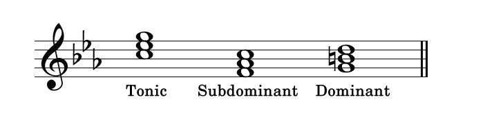 The triads built on the tonic, the subdominant and the dominant form a group called the primary triads. The primary triads in major keys are all major. Together they cover all seven notes of the major scale.