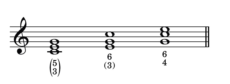 This is done by counting the intervals from the bass note. For example, a root position chord may be shown as 5/3 as it consists of the tonic, with the 3rd and the 5th above. Given that root position chords are so common, the 5/3 is usually omitted and ‘taken as read’.