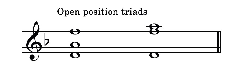 In open position the notes might be in a different order above the tonic, as in the two examples above (i.e. D, A, F and D, F A).