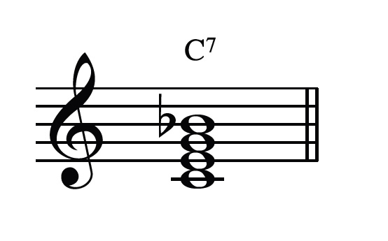 The chord symbols may also have numbers included which show additional notes to be played. The most common is the 7, which typically appears in the context of three different types of 7th chord. A single letter plus the number 7 indicates a dominant 7th chord. This chord is created when a minor 7th is added to the dominant triad in any key. In a major key this means that the additional note is the flattened leading note, sometimes called the ‘subtonic’.