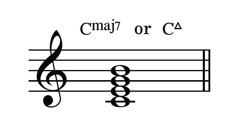 To show the chord without the 7th being flattened, which creates a major 7th chord, either a triangle sign or ‘maj 7’ is placed after the letter: