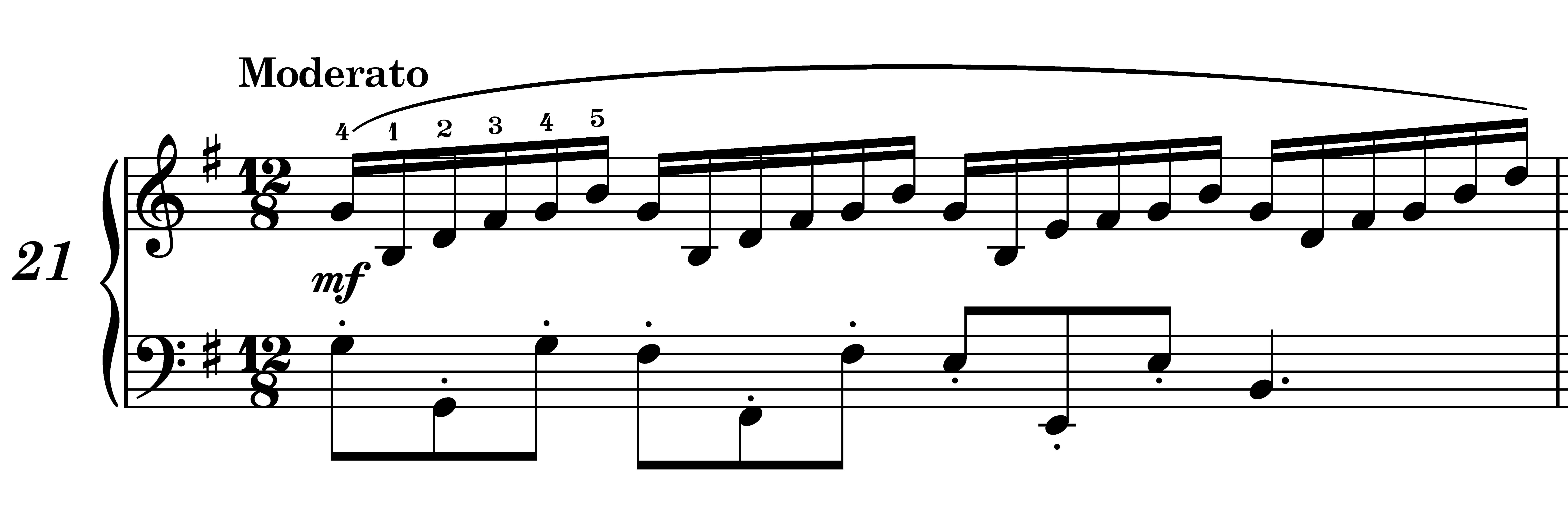 In Cramer’s 21st Study from his Opus. 30 we should resist the temptation to leave the right hand in an open position to secure covering of the octaves encircling the demanding passagework; instead, we utilise the logic of Taubman’s middle part of motion and rotate the hand towards the direction of the top note, making sure that the thumb is never left behind at the bottom note.
