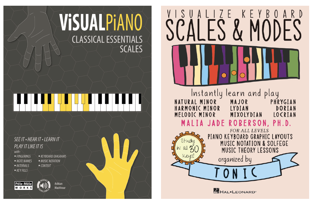Briefly summing up a few other books on the market, the presentation in Madeleine Dinsart’s Scales and Arpeggios, published by Schott, is too dated and uninviting to warrant serious consideration. Visual Piano Classical Essential Scales takes the notation-cum-pictorial approach, but the graphics fall well short of the standards set elsewhere.