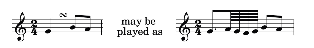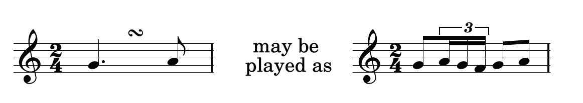 When the main note is a dotted note, the appoggiatura takes two-thirds of its value: