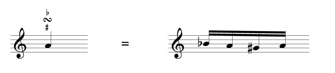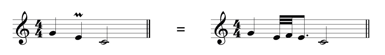 This ornament works in the same way as the turn symbol, except that the pattern of notes is reversed, with the first note being the note below: