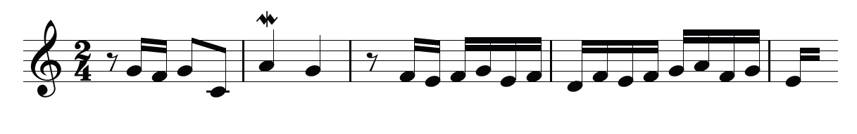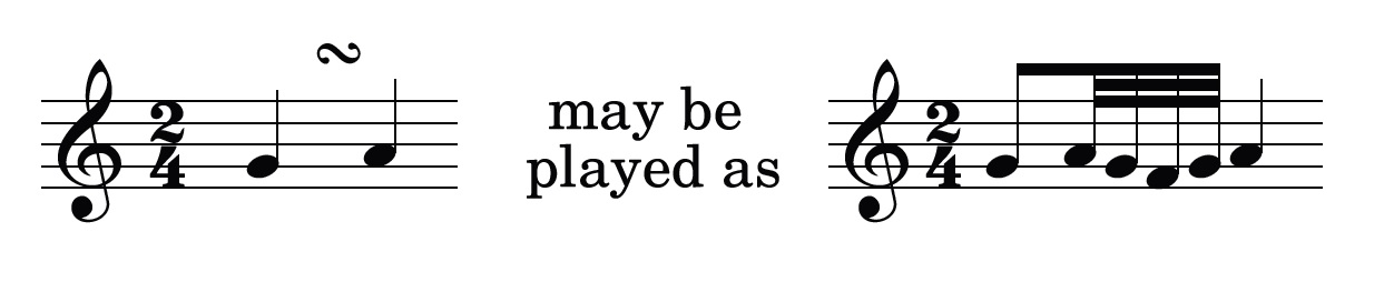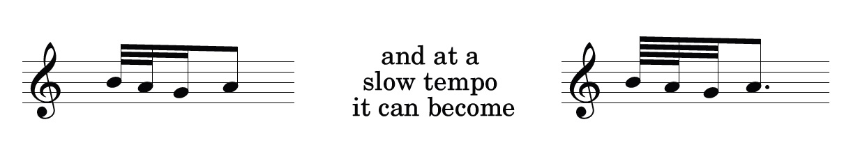 The relative speed and rhythm of the notes, and the overall duration of theturn, depends on where the symbol is placed, the tempo, and on the taste of the performer. Context is everything! For example, at a moderate tempo, the turn can be played as: