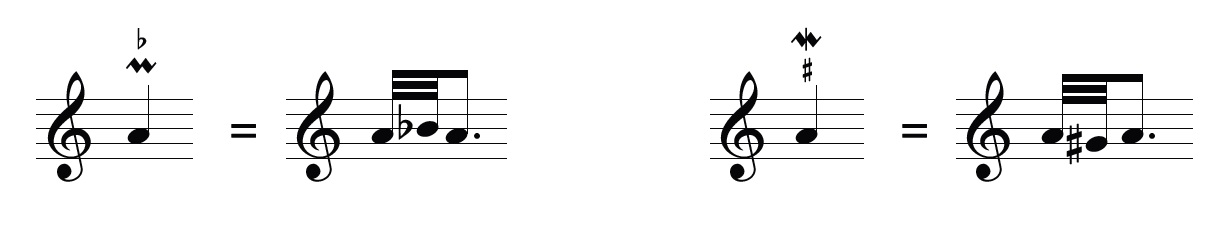 If an accidental is needed on the upper or lower note of the mordent, the sign is written above or below the mordent symbol: