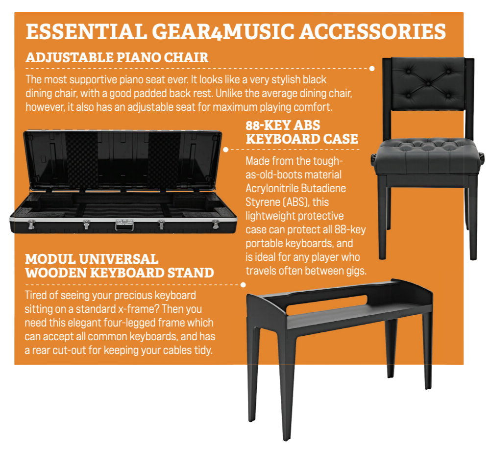 Something else positive that’s worth noting: you can often make a ‘custom bundle’ when purchasing most keyboards, by adding an adjustable stool and/or headphones to the package. Buying them together creates a discount.