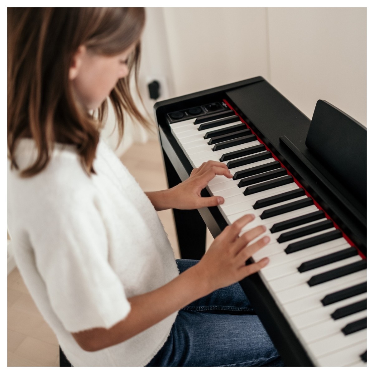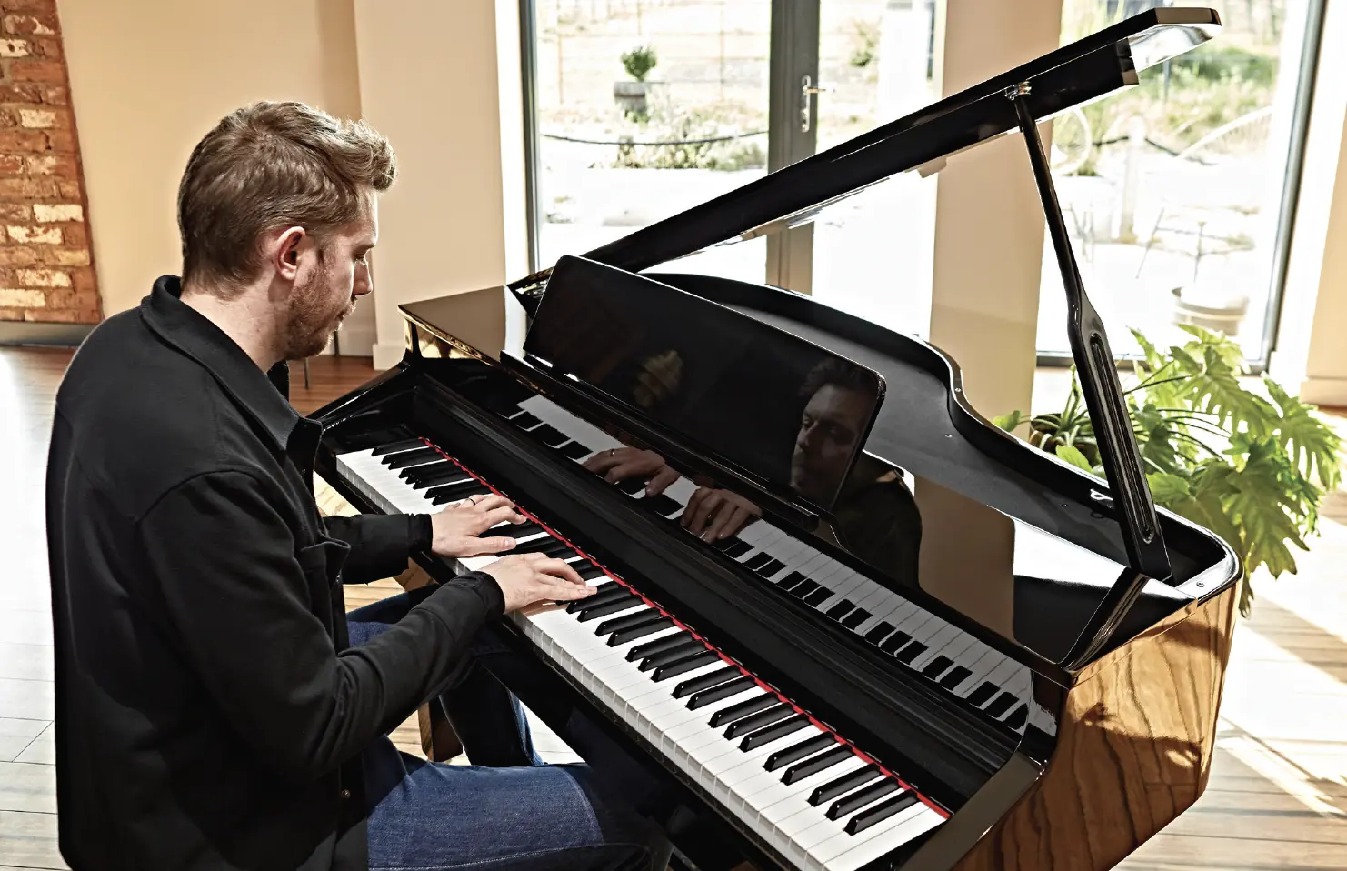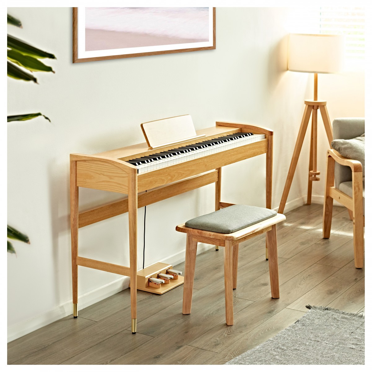 Another new and extremely enticing range of pianos offered byGear4music, is called Keynote. Here there is an appealing emphasis on the aesthetic impact, and each of the instruments has a sleek stripped-back look, reminiscent of mid-century Scandinavian design. Starting from the very wallet-friendly Keynote Junior with just five octaves, aimed at young beginners, to the striking full-size Keynote Contemporary in Light Oak, the whole range is powered by the advanced ‘Dream’ sound system. This system, which is also used by the Sonori range, offers 40 distinct voices, from piano to organ to open strings – available at the touch of a keypad.