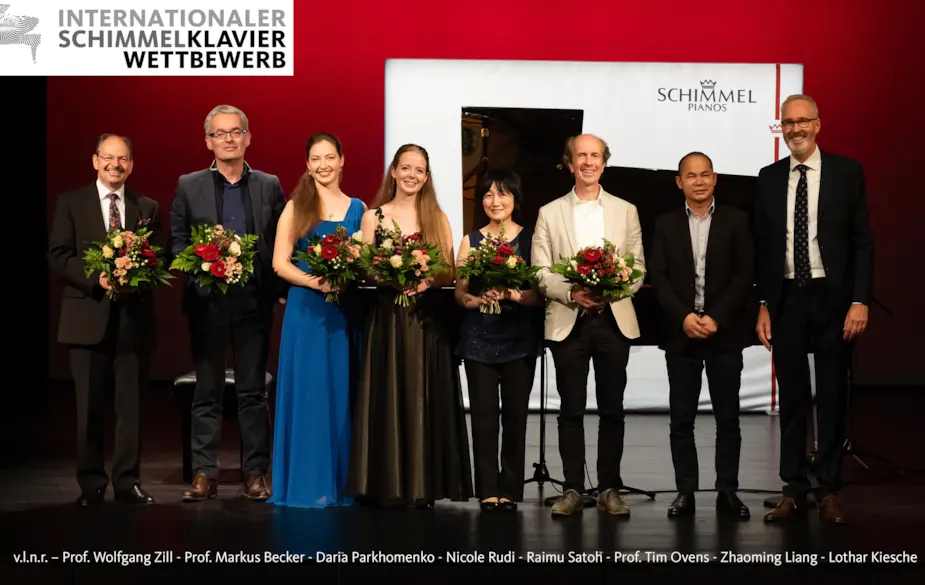 24 young pianists from 10 nations qualified for the final rounds of the 1st International Schimmel Piano Competition, before being narrowed down to 7 finalists by the Jury (Prof. Wolfgang Zill (Jury Chairman), Prof. Markus Becker, Prof. Yuka Imamine, Prof. Tim Ovens and Prof. Milana Chernyavska).