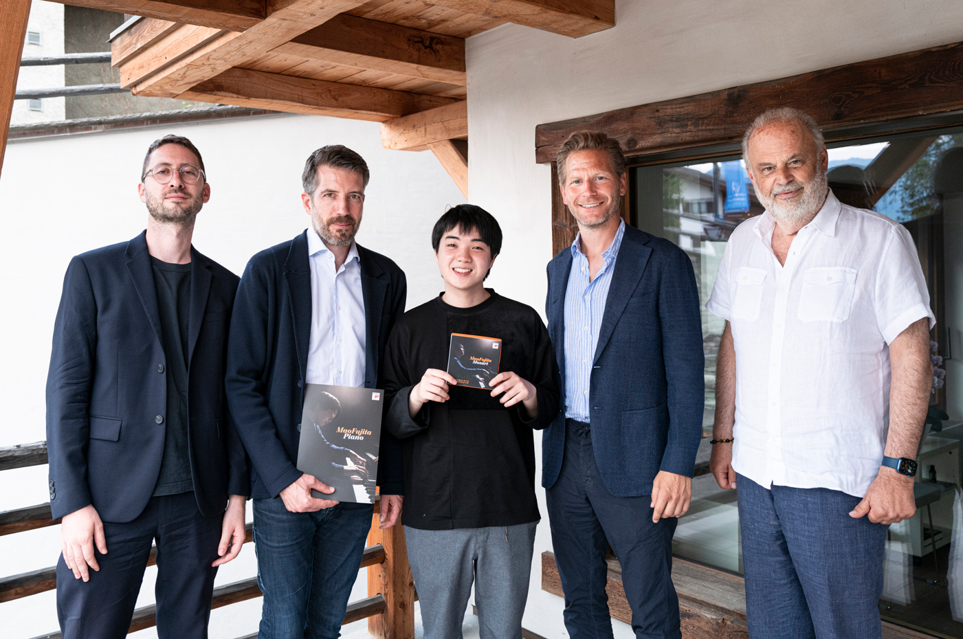 From left to right: Jack Smith (Executive Producer, Sony Classical International); Alexander Boesch (Vice President International Marketing, Sony Classical International); Mao Fujita; Per Hauber (President, Sony Classical International); Martin Engstroem (Founder & Director, Verbier Festival). Photo credit: ©Nicolas Brodard