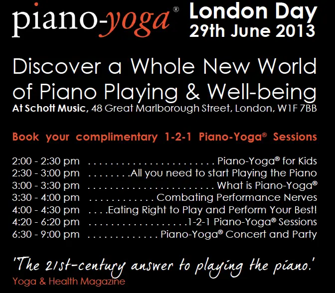 The Piano-Yoga London Open Day aims to give Londoners everything that Piano-Yoga has to offer, with free taster classes for the public to come and try for themselves ...