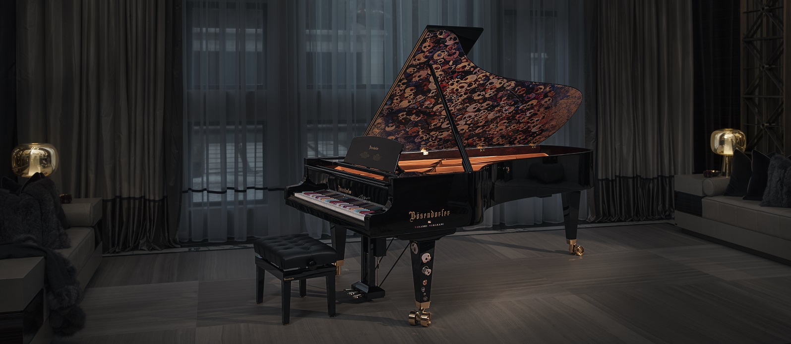 The 380VC Concert Grand was personally created for him by designer and artist Ferris Rafauli in collaboration with Takashi Murakami