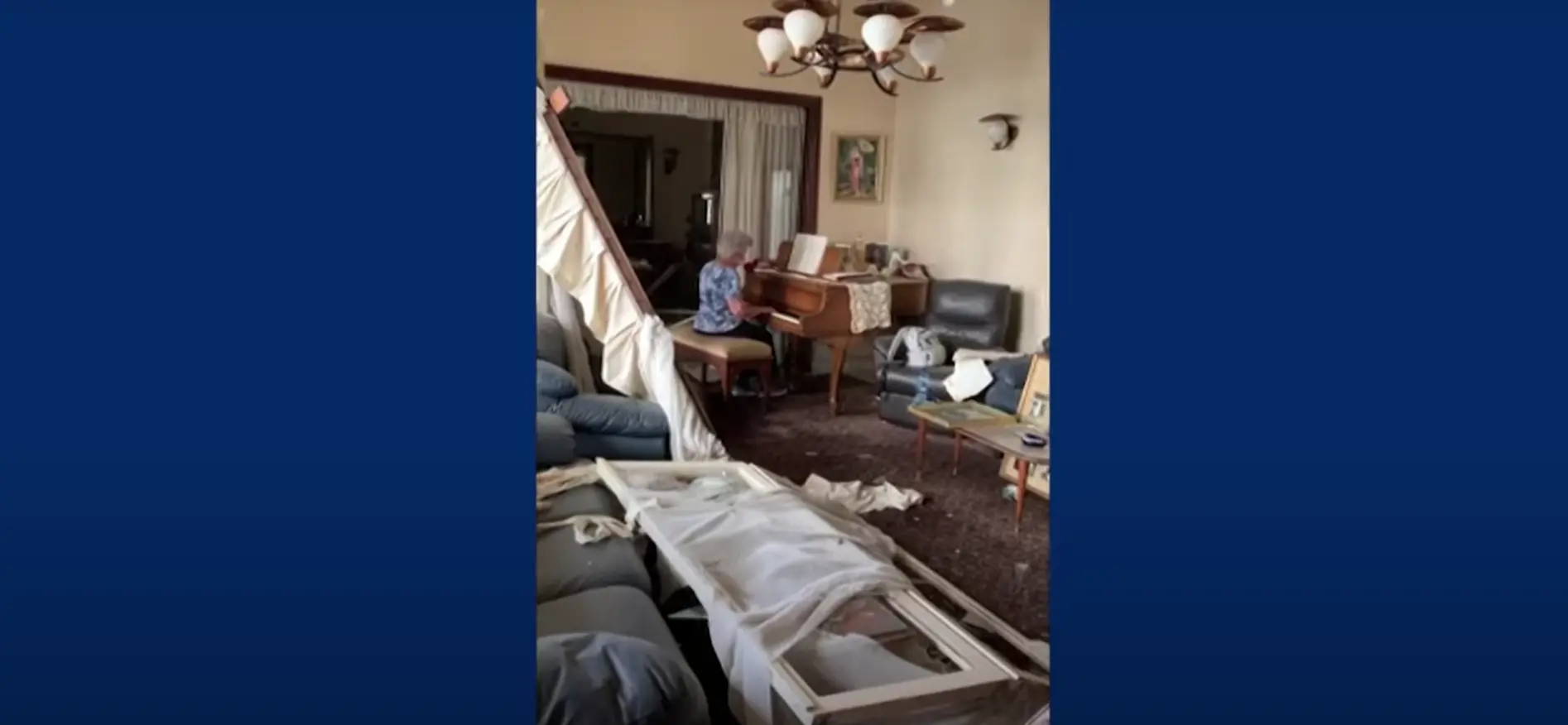 Miraculously, her grand piano seems to have not suffered even a scratch.