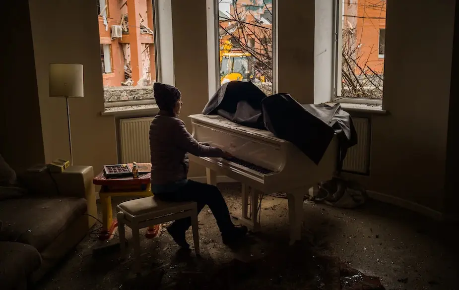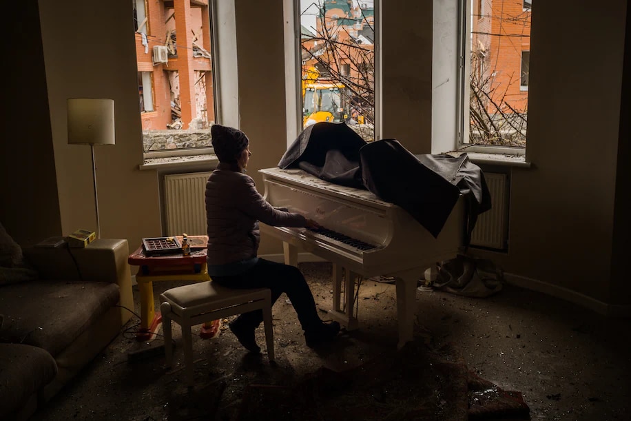 Watch this very moving footage of a Ukrainian pianist performing Chopin surrounded by the remains of her bombed home.